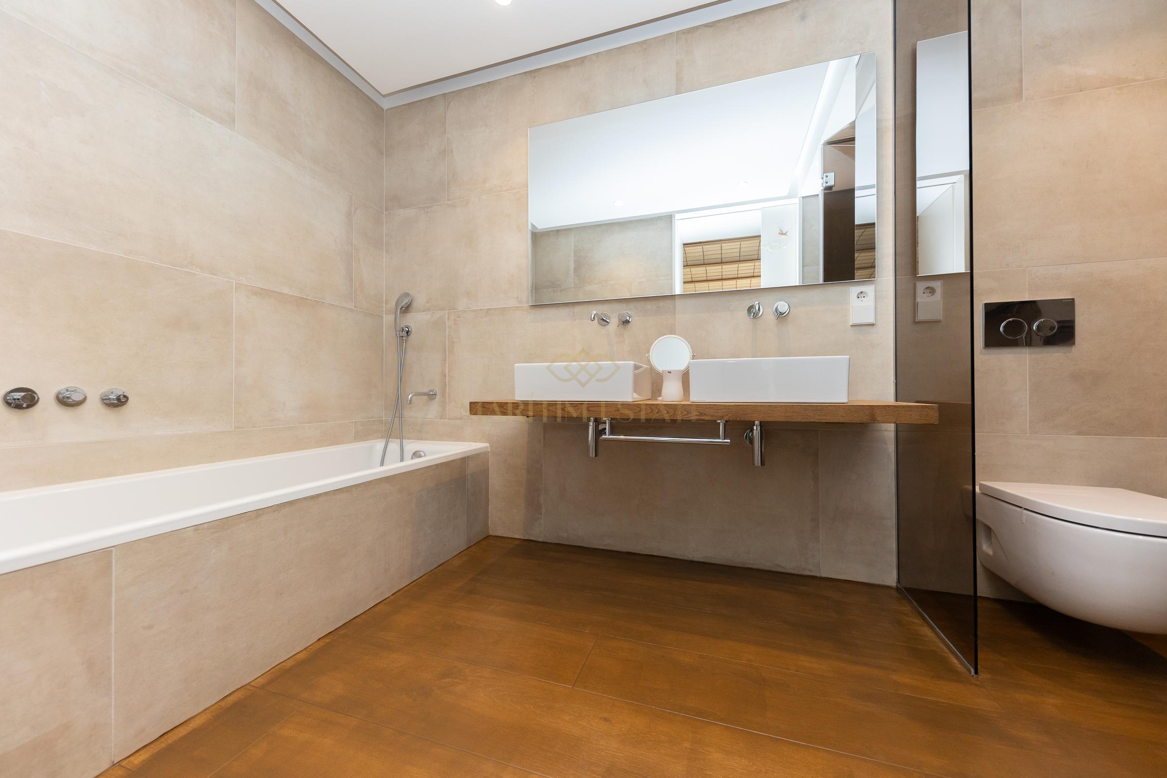 В доме предусмотрены четыре спальни, каждая из которых оборудована собственной ванной комнатой. Две из спален имеют прямой выход к бассейну, что добавляет особую атмосферу уединения и роскоши. Просторная кухня, выполненная с использованием качественных материалов и оснащенная всем необходимым, станет идеальным местом для семейных ужинов или кулинарных экспериментов. Гостиная — сердце дома — отличается изяществом и функциональностью, создавая пространство для отдыха и общения.