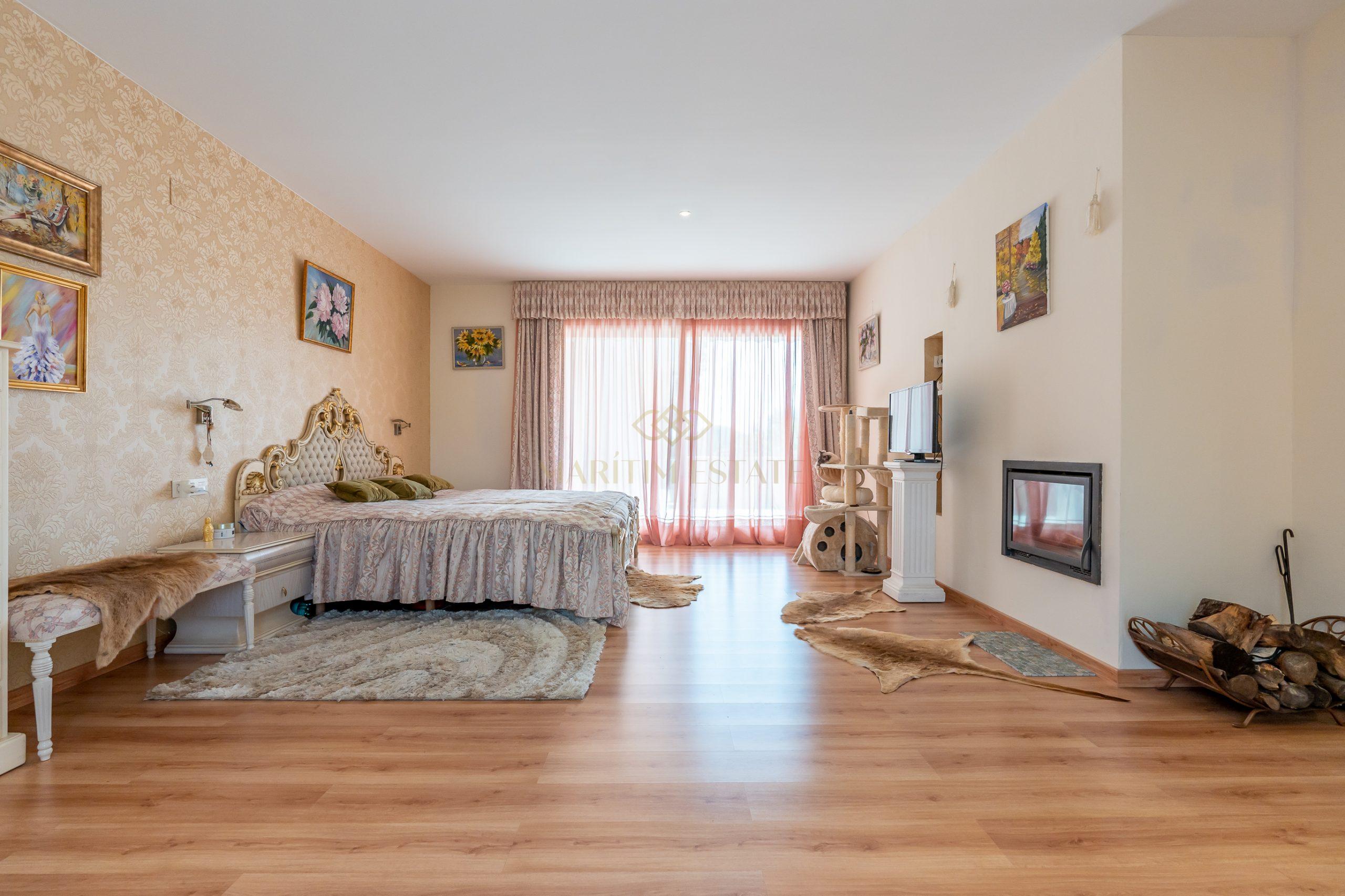 In the main part, on the first floor, you will find a spacious living-dining room with a fireplace and direct access to the terrace and patio, where you can enjoy a private pool and barbecue area. The kitchen is independent and connected to the pantry and a garage. This floor also includes a double bedroom and a guest toilet. On the second floor, the master bedroom is en-suite with a bathroom (with a bathtub and shower), a walk-in closet, a fireplace, and access to two terraces. Additionally, there is a spacious office with a library, perfect for working from home or enjoying quiet reading time. All the rooms on this floor have access to the terrace.