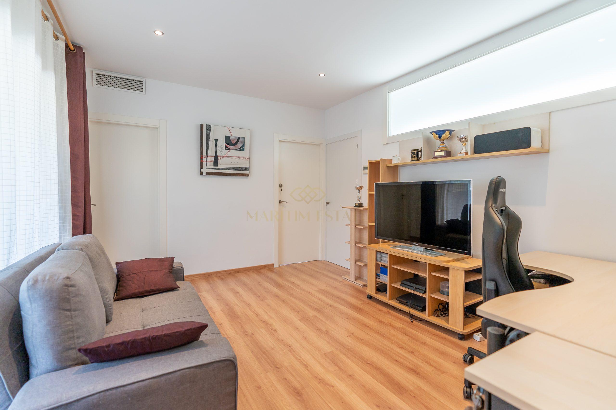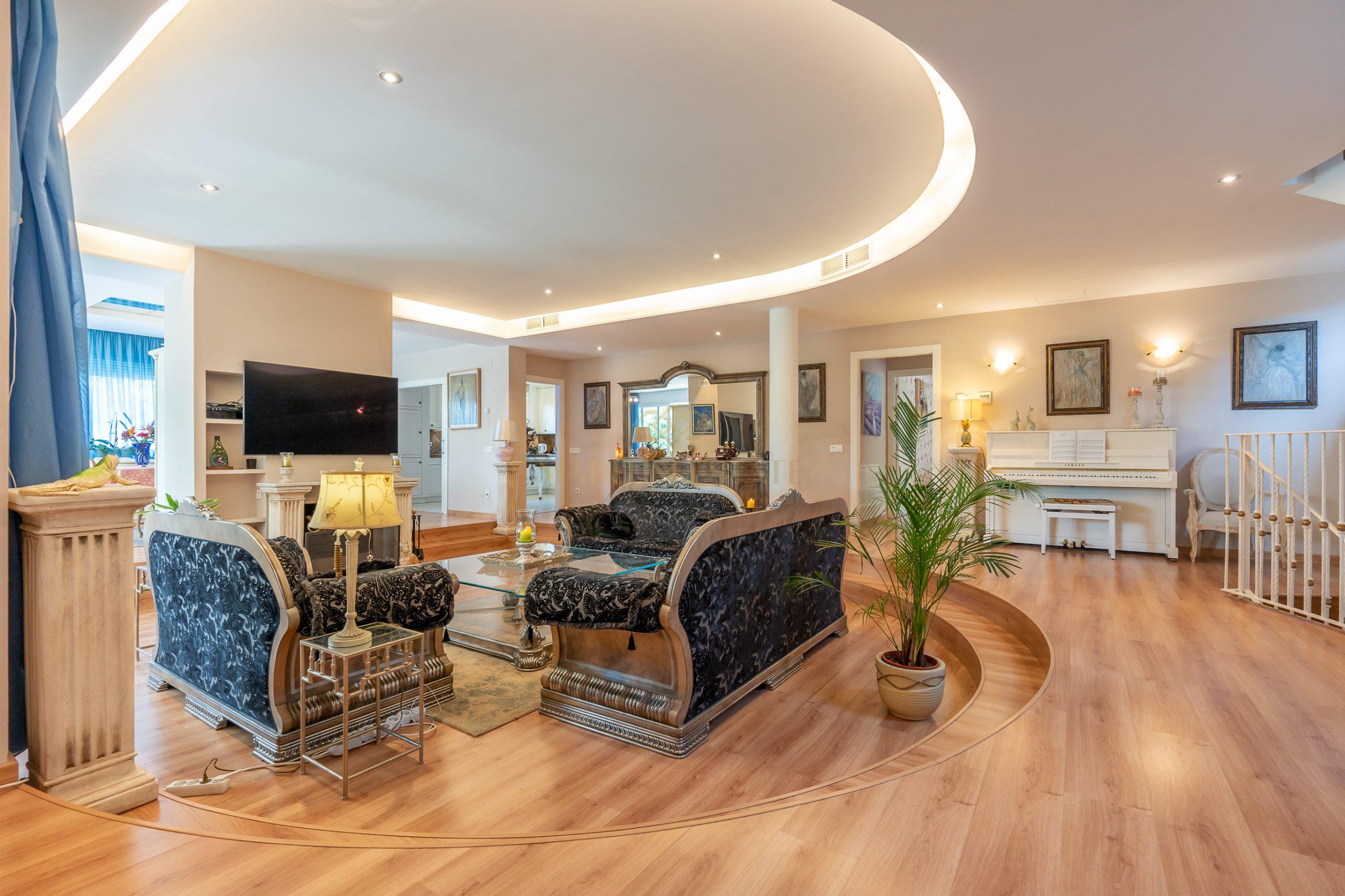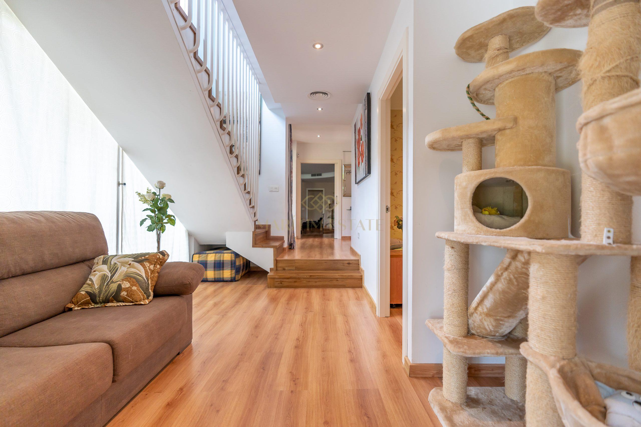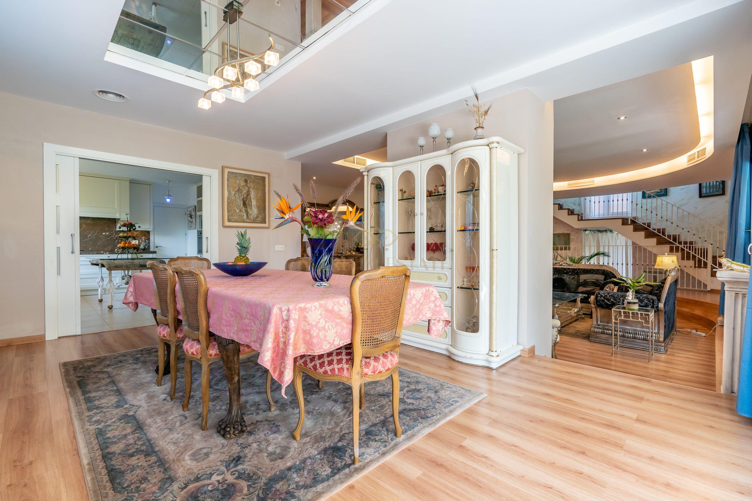 In the basement, the property offers a charming wine cellar, ideal for tasting fine Spanish wines. There is also a pantry, a toilet, and a room prepared for a future sauna installation. The ample parking space has been transformed into a lounge area, perfect for playing billiards or indulging in your hobbies, such as painting.