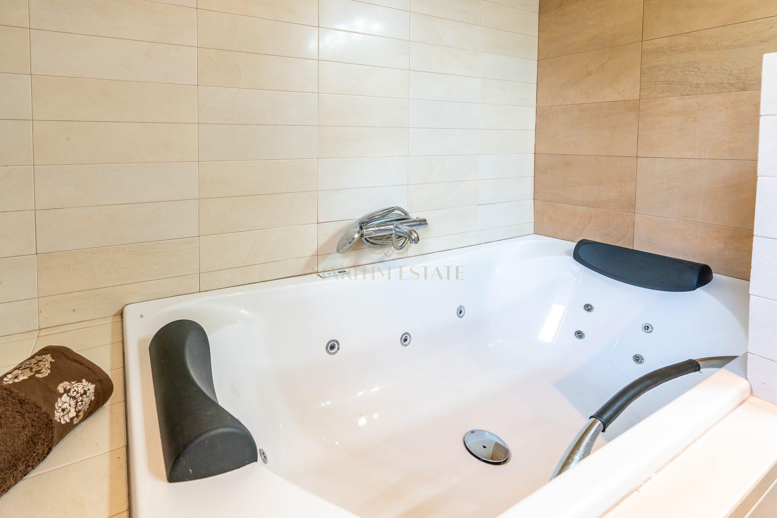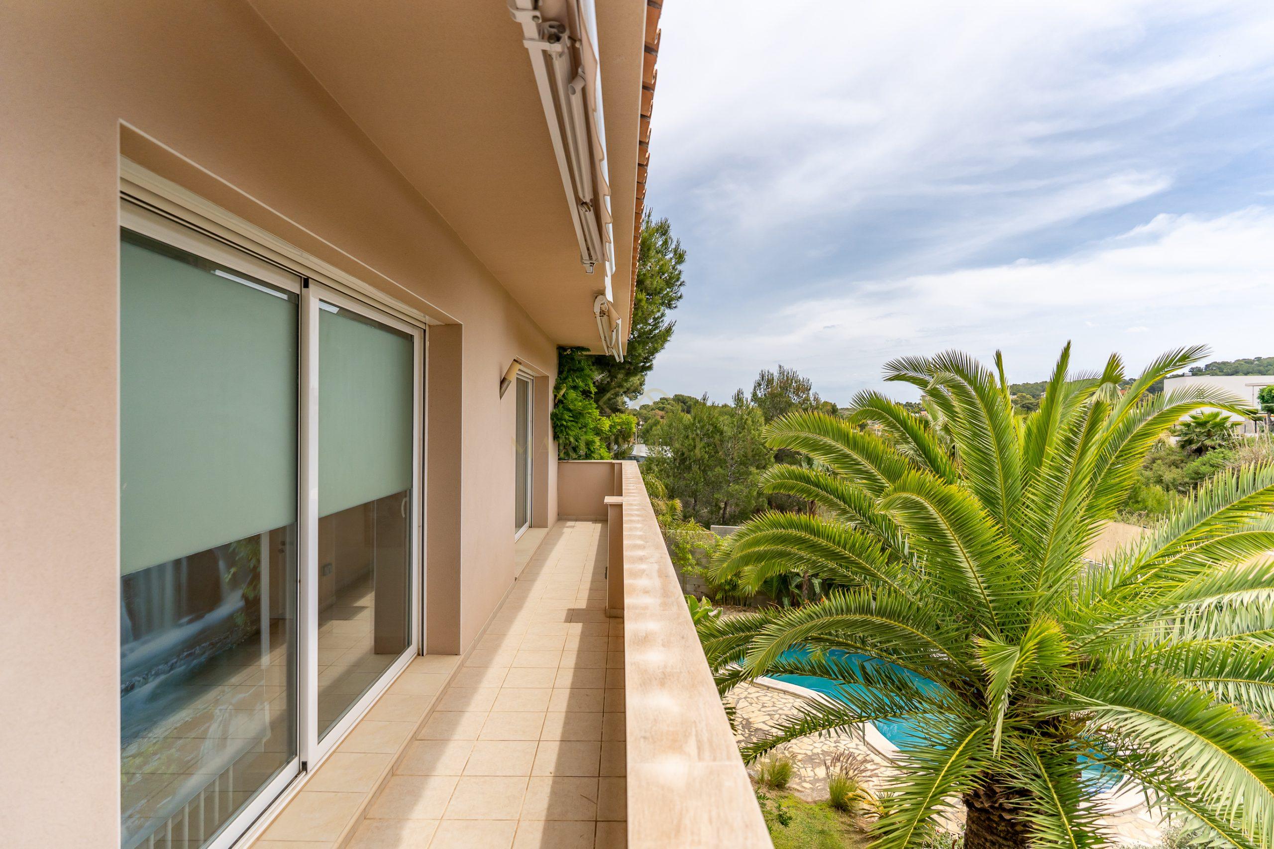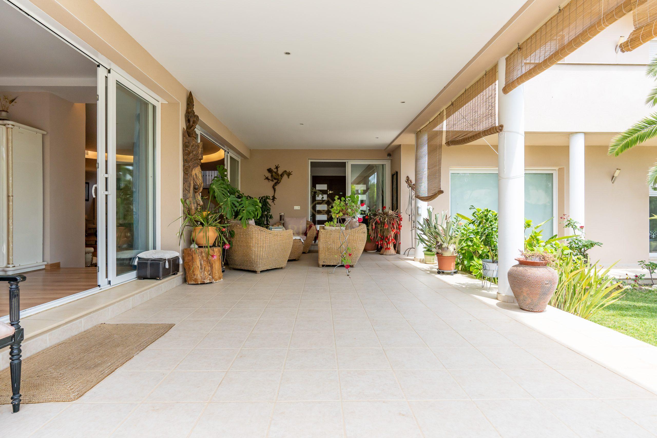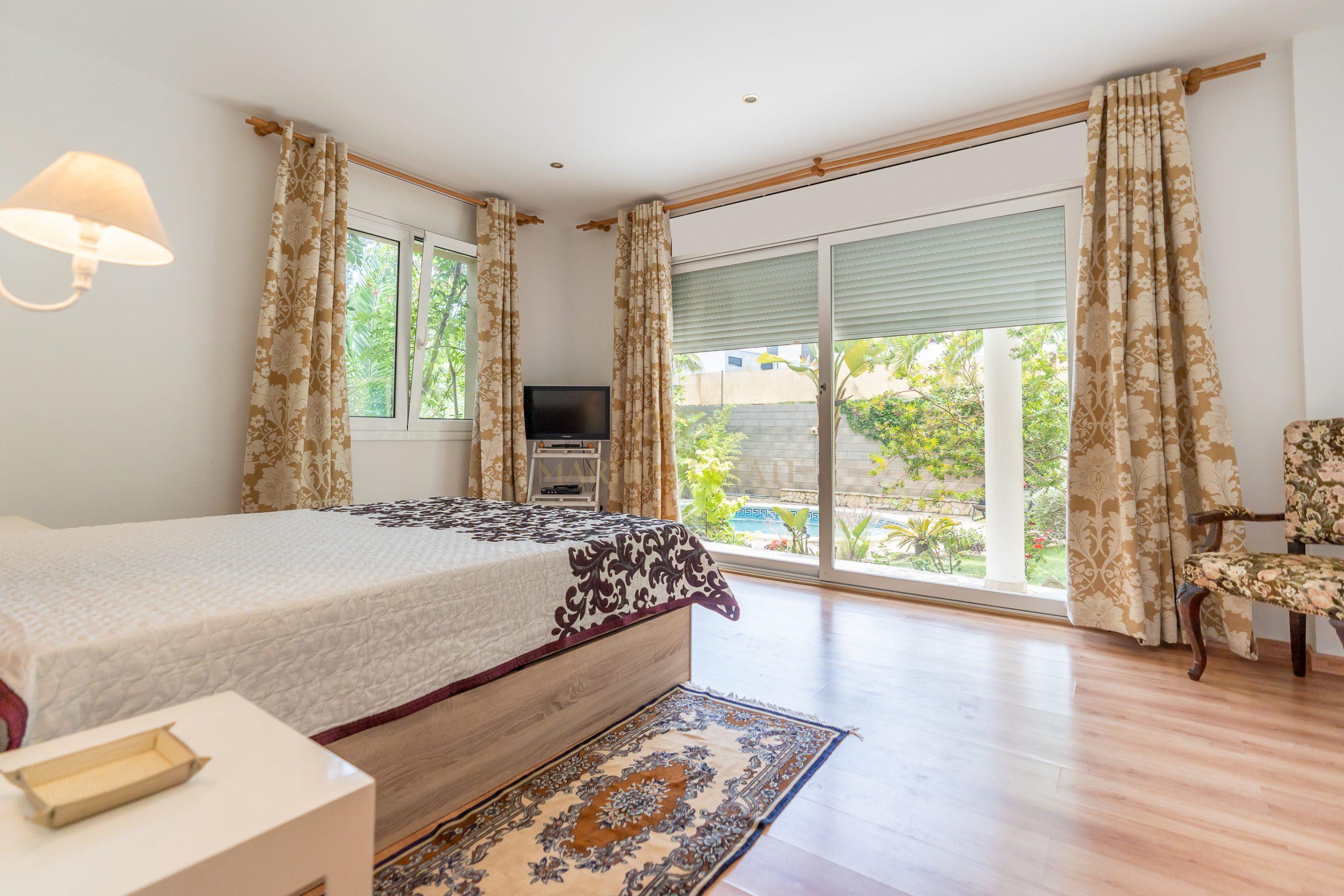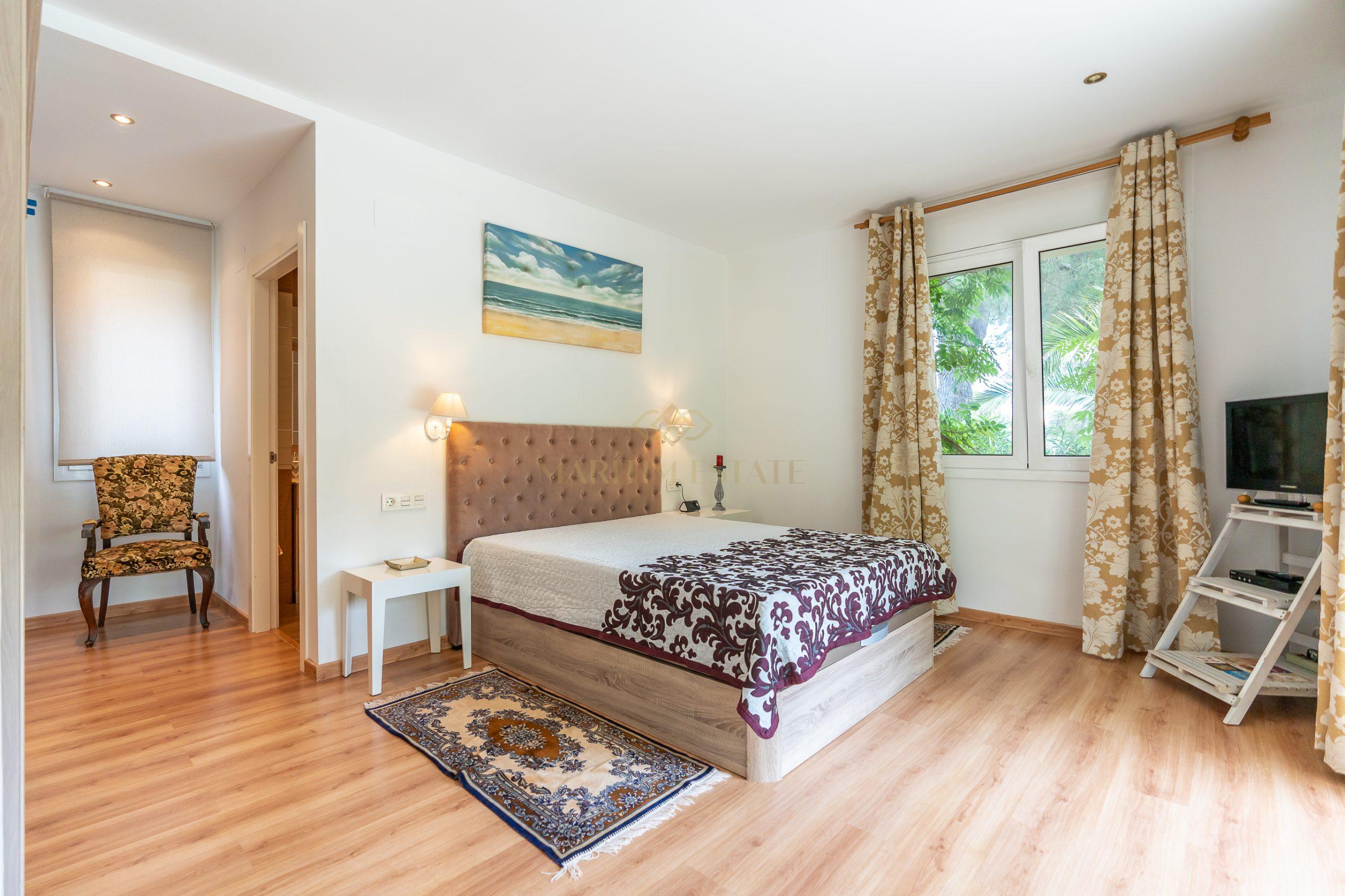 The second part of the house, separated by a large hall on the first floor, includes two double en-suite bedrooms, one of which has direct access to the patio. On the second floor, there are two more bedrooms that share the same bathroom.